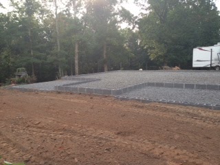 The blocks have all been laid. The gravel will be delivered Monday. Plumbing will be next then they will pour our concrete. We will have to lock up all 6 dogs in the garage. Since we will have stained polished concrete floors on the main level, we don't want any dog prints on our floor. Lol.